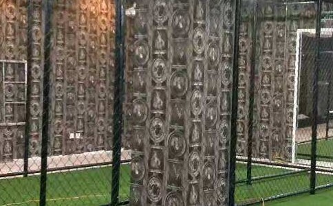 球場圍網(wǎng)的高度可為4米。場所若臨居民區(qū)或馬路,其高度均勻?yàn)?米,籃球場圍網(wǎng)的基礎(chǔ)圍網(wǎng)支柱的間隔應(yīng)根據(jù)圍網(wǎng)的高度和基礎(chǔ)的深度概括考慮,間隔4米。